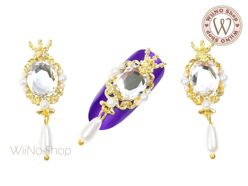 Crown Oval Crystal Drop Pearl Nail Dangle Charm - 2 pcs