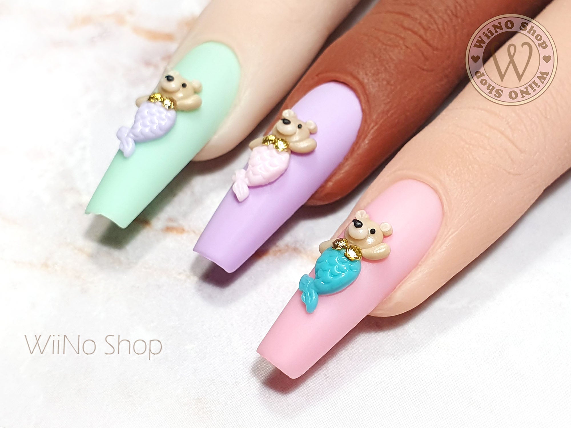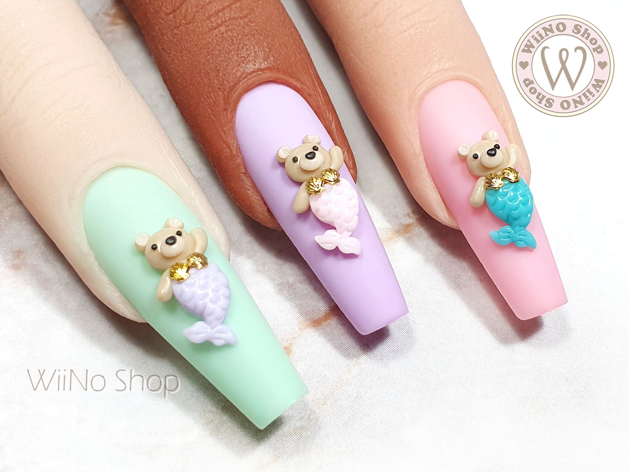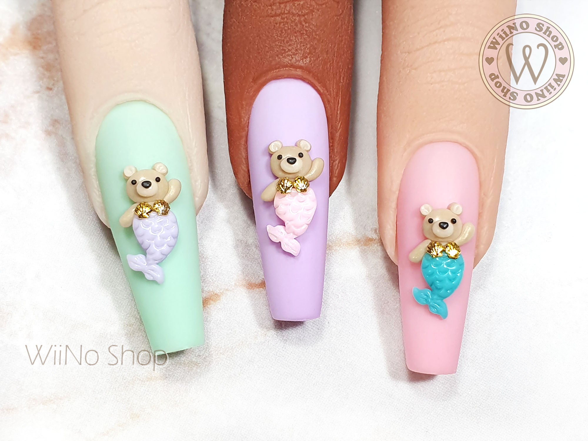Mermaid Bear 3D Handmade Nail Art Charm - 2 pcs