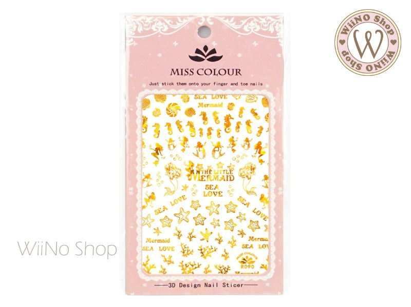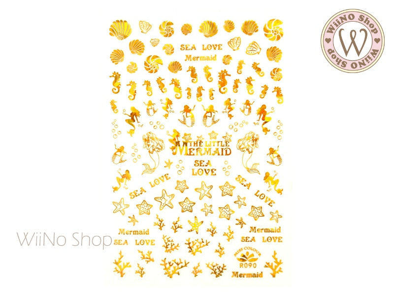 Mermaid & Sea Gold Holographic Adhesive Nail Art Sticker - 1 pc (R090GH)