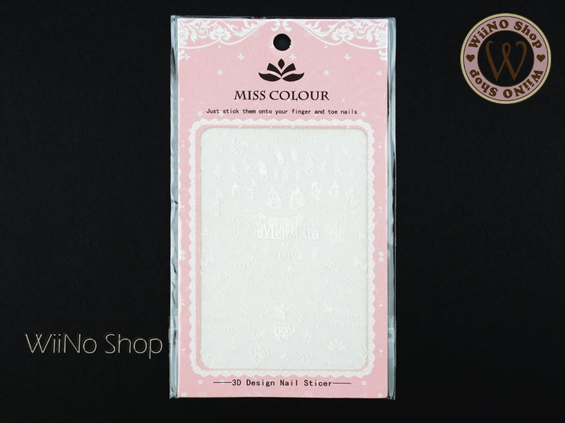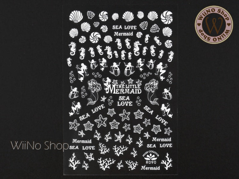 Mermaid & Sea White Adhesive Nail Art Sticker - 1 pc (R090W)