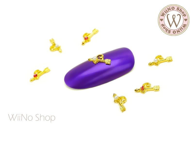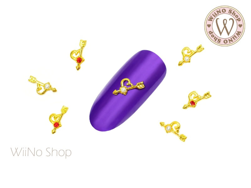 Mini Cupid Heart Arrow Nail Metal Charm - 2 pcs
