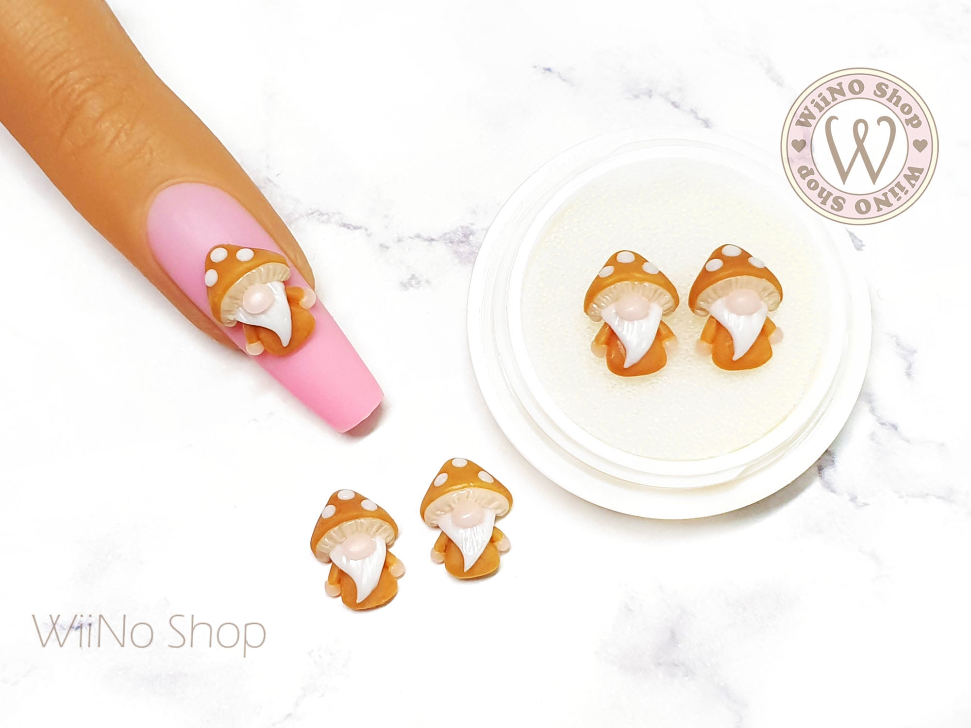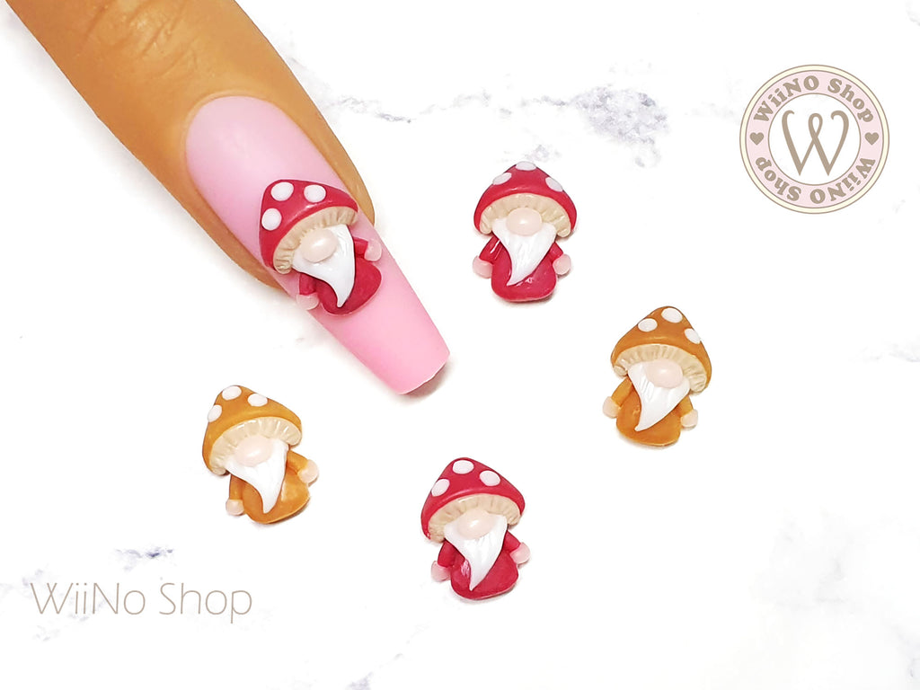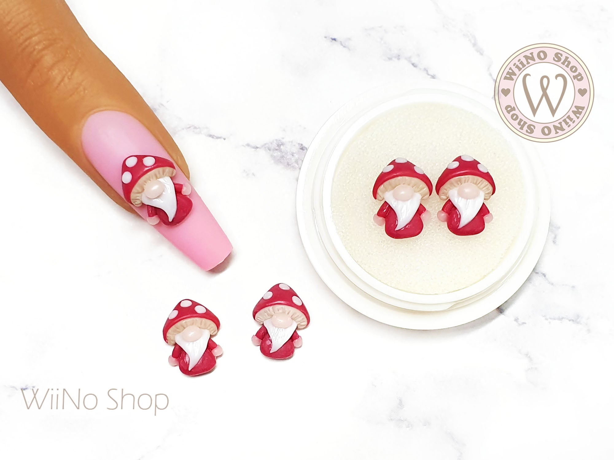 Mushroom Hat Gnome 3D Handmade Nail Art Charm - 2 pcs