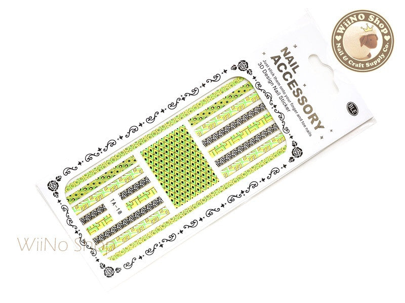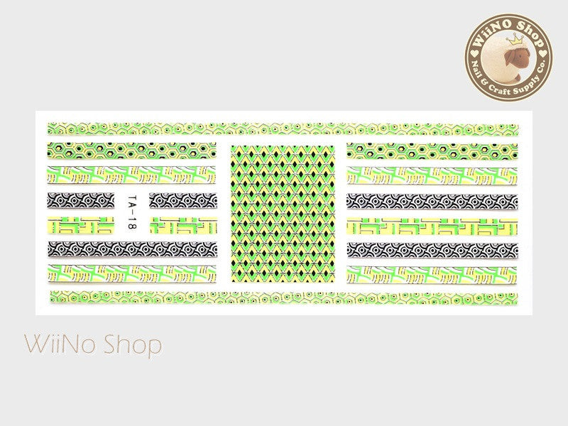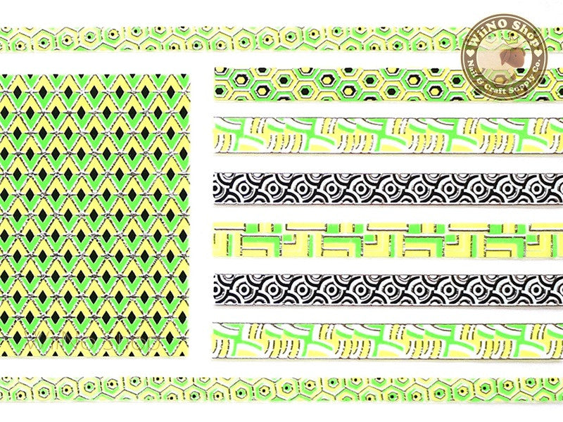 Neon Green Silver Geometric Pucci Style Adhesive Nail Sticker Nail Art - 1 pc (TA-18S)