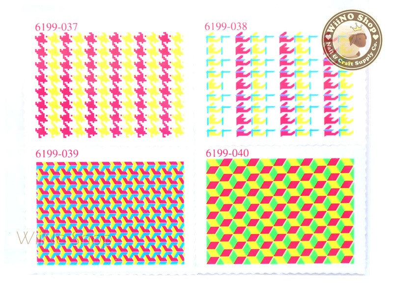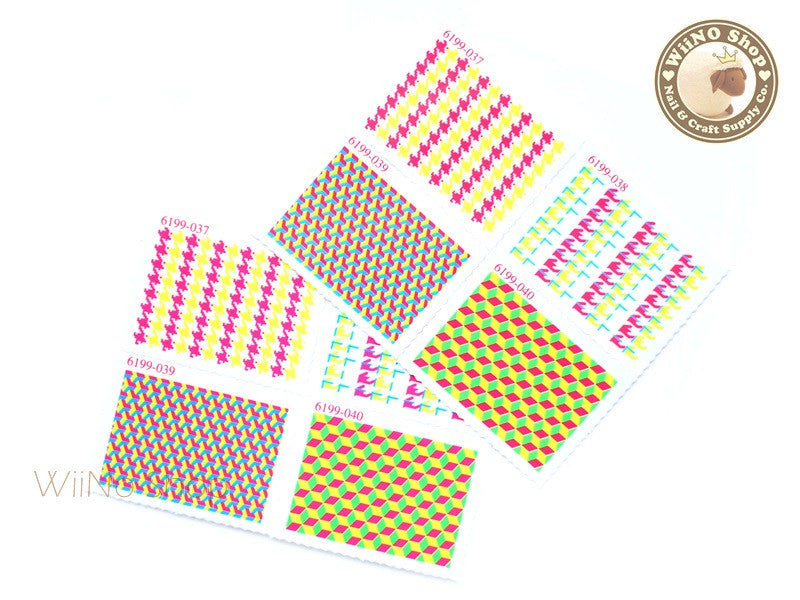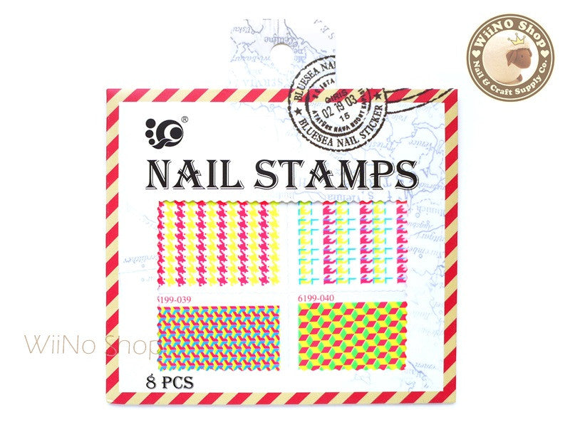 Neon Houndstooth Pattern Stamp Water Slide Nail Art Decals - 1pc (BLS10)