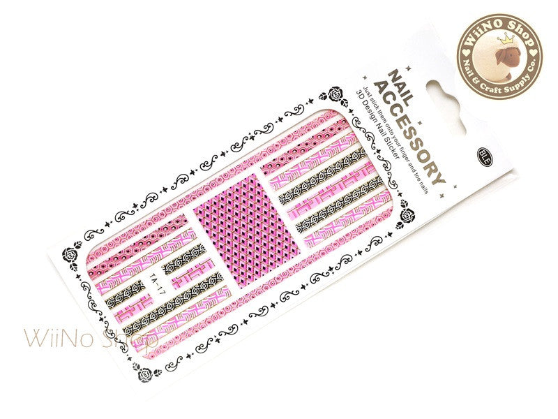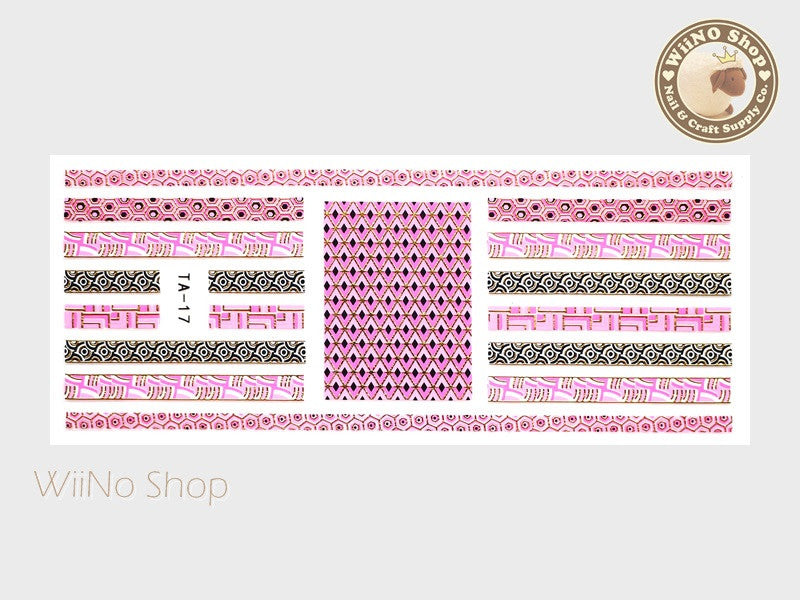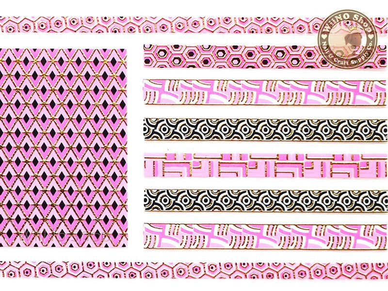 Neon Pink Gold Geometric Pucci Style Adhesive Nail Sticker Nail Art - 1 pc (TA-17G)