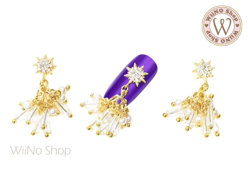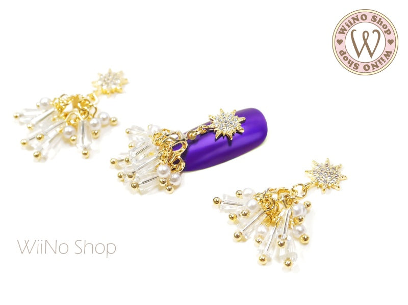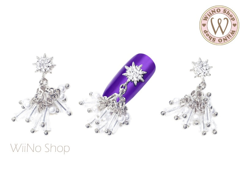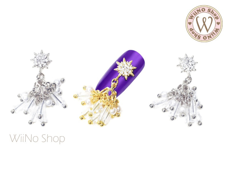 Octagram Chandelier Nail Jewelry Charm with Chain - 1 pc