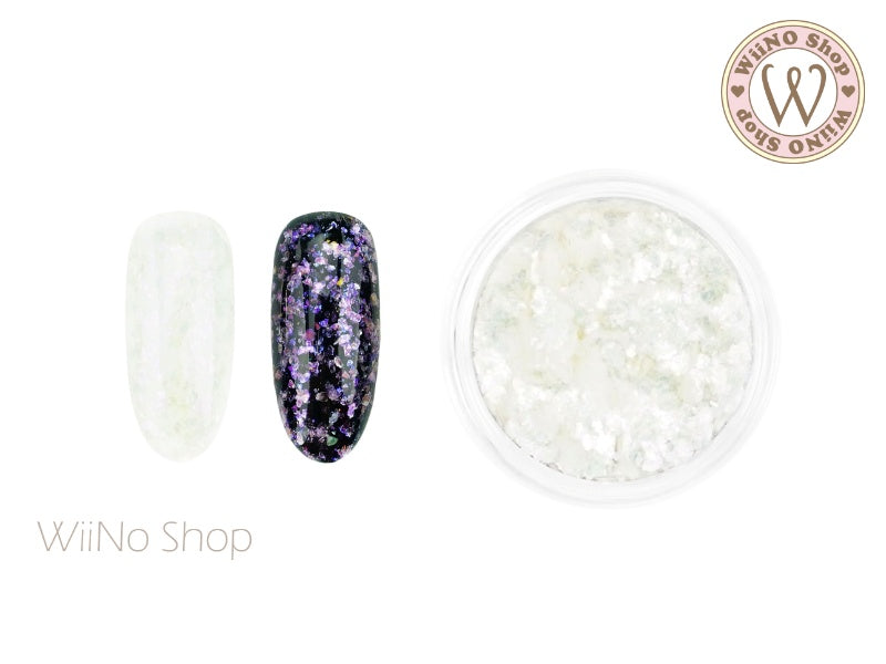 3. Use the gel brush with a little amount of clear gel then dip in flake opaline dust and apply on the nail. Cure under the LED/UV lamp.