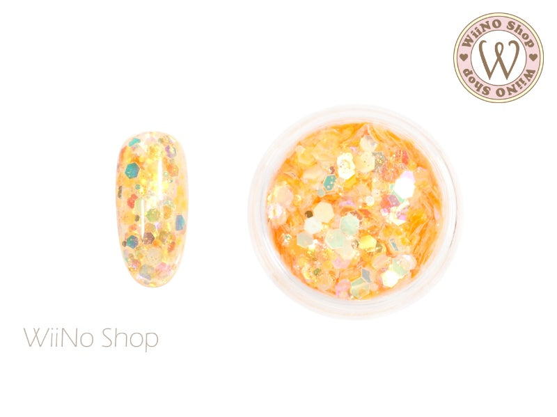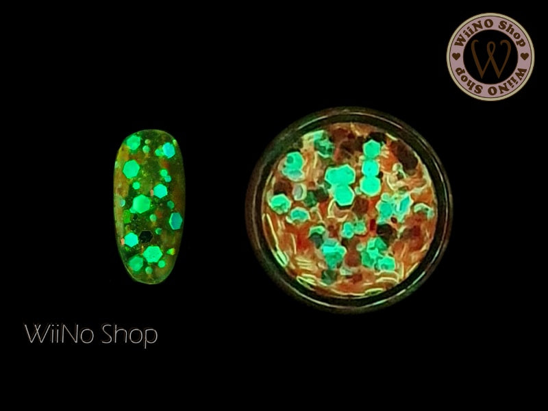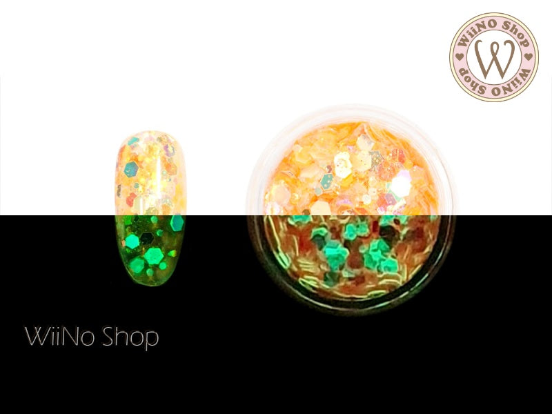 Orange Glow in The Dark Hexagon Mix with Glitter Dust (GD06)