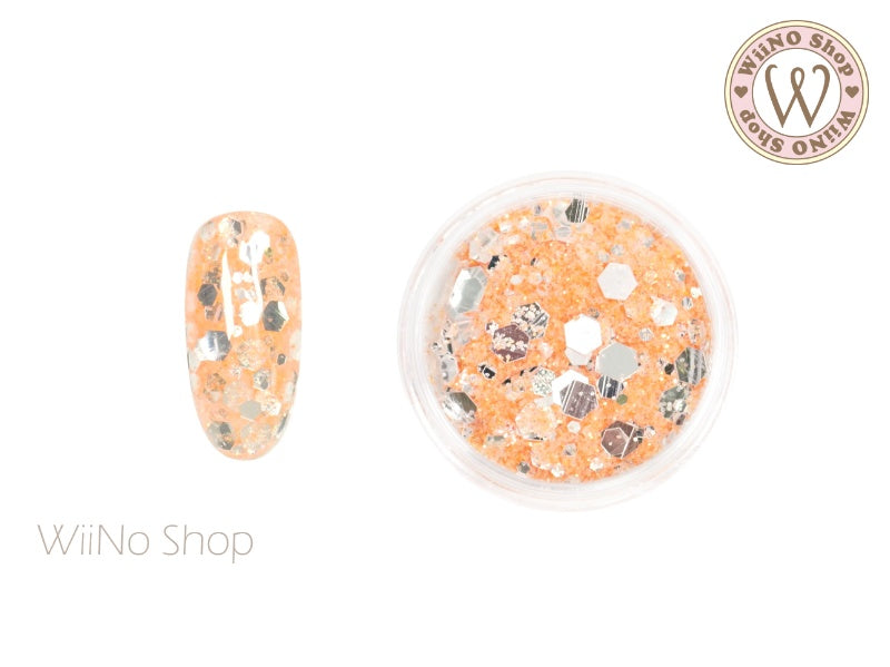 Orange Mirror Hexagon Mix with Glitter Dust (HM10)