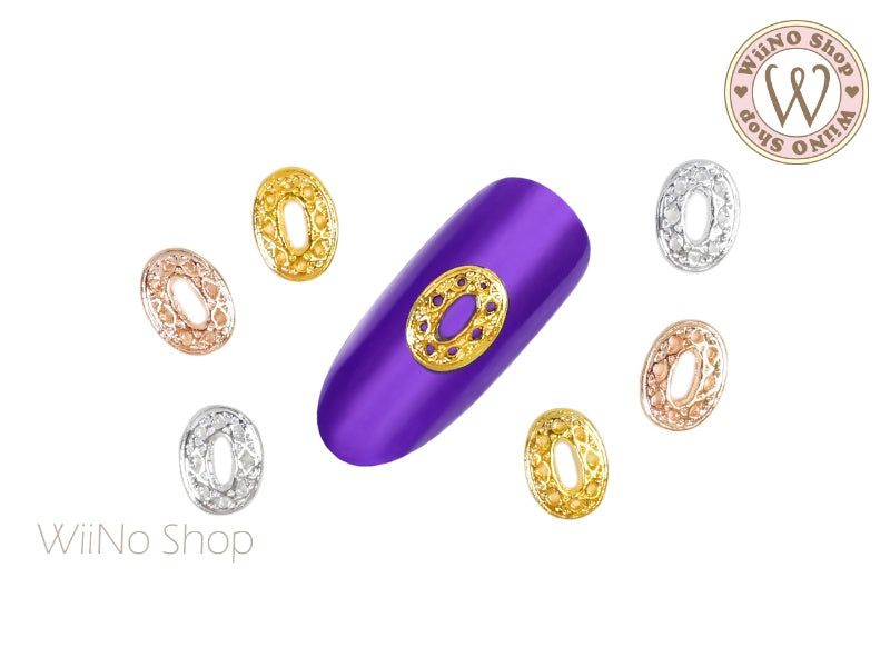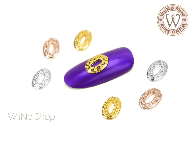 Oval Geometric Frame Nail Metal Charm - 2 pcs