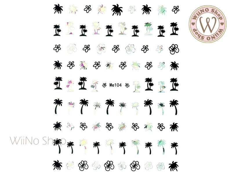 Palm Tree Silver Holographic Adhesive Nail Art Sticker - 1 pc (Me104-BSH)
