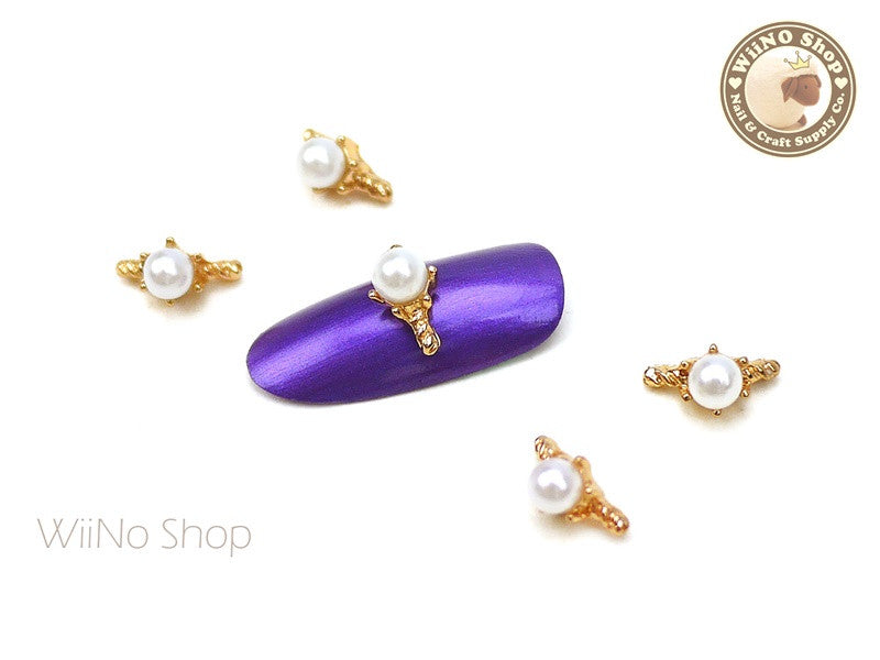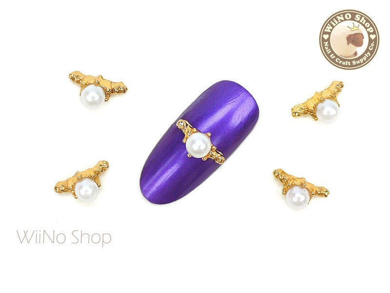 Pearl Gold Ring Nail Metal Charm - 2 pcs