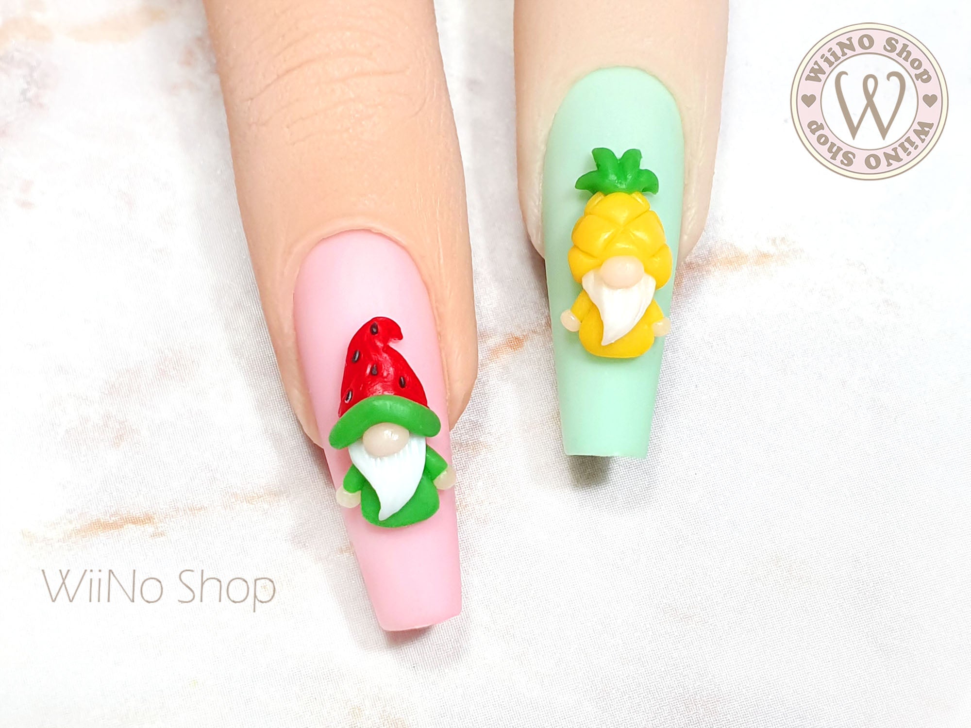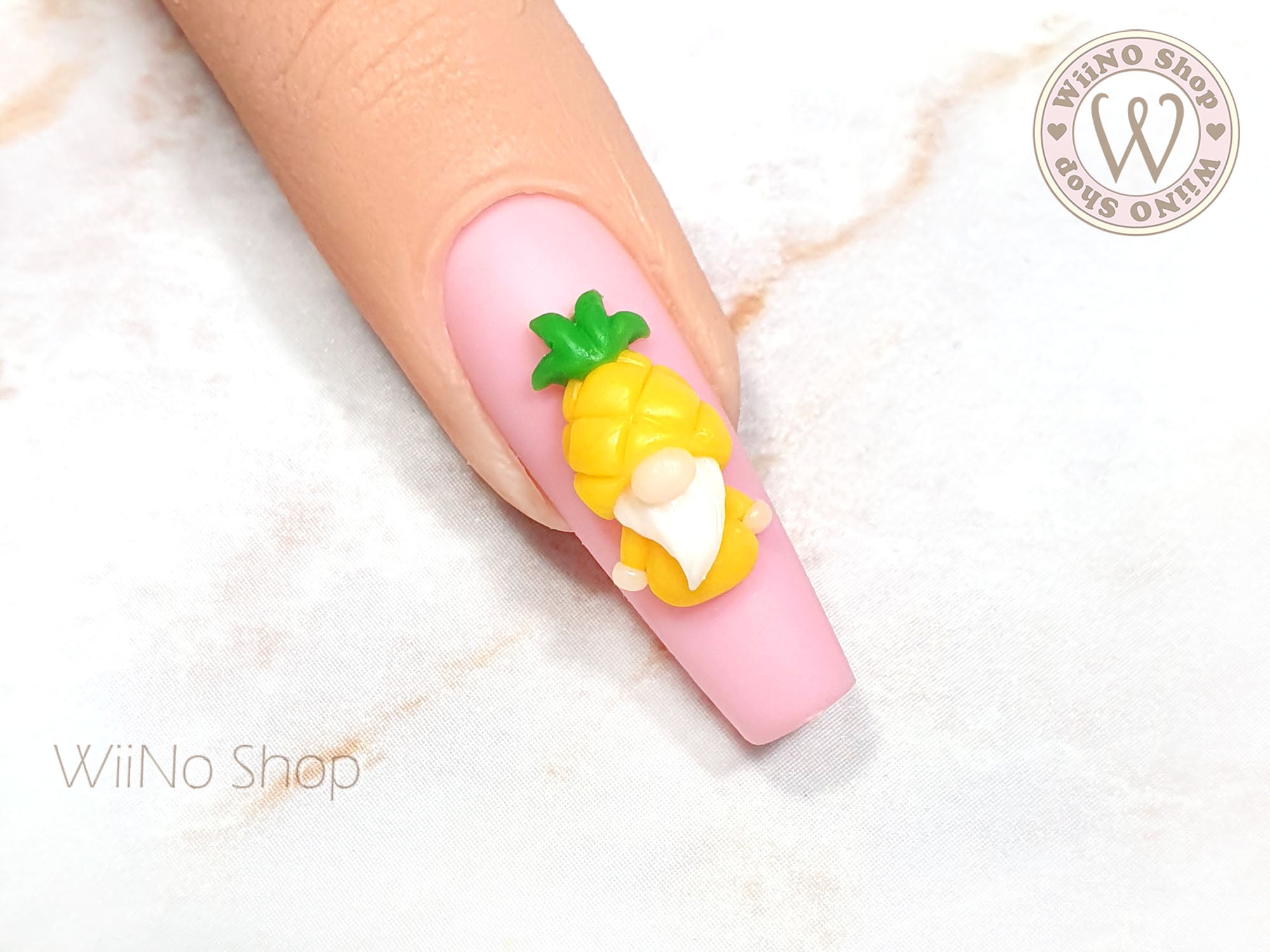 Pineapple Hat Gnome 3D Handmade Nail Art Charm - 2 pcs