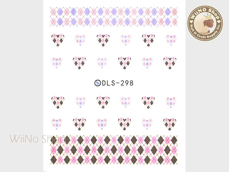 Pink Argyle Pattern Water Slide Nail Art Decals - 1pc (DLS-298)