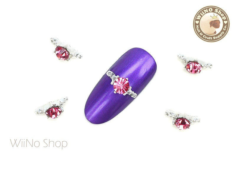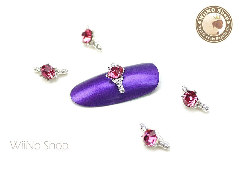Pink Diamond Silver Ring Nail Metal Charm - 2 pcs