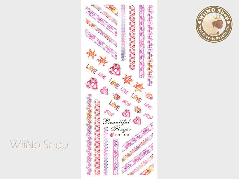 Pink Gradient Lace Pattern Water Slide Nail Art Decals - 1pc (HOT-158)