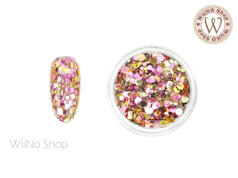 Pink Ombre Hexagon Mix Sizes Glitter (HO02)