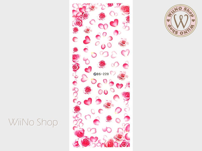 Pink Rose Petals Water Slide Nail Art Decals - 1 pc (DS-220)