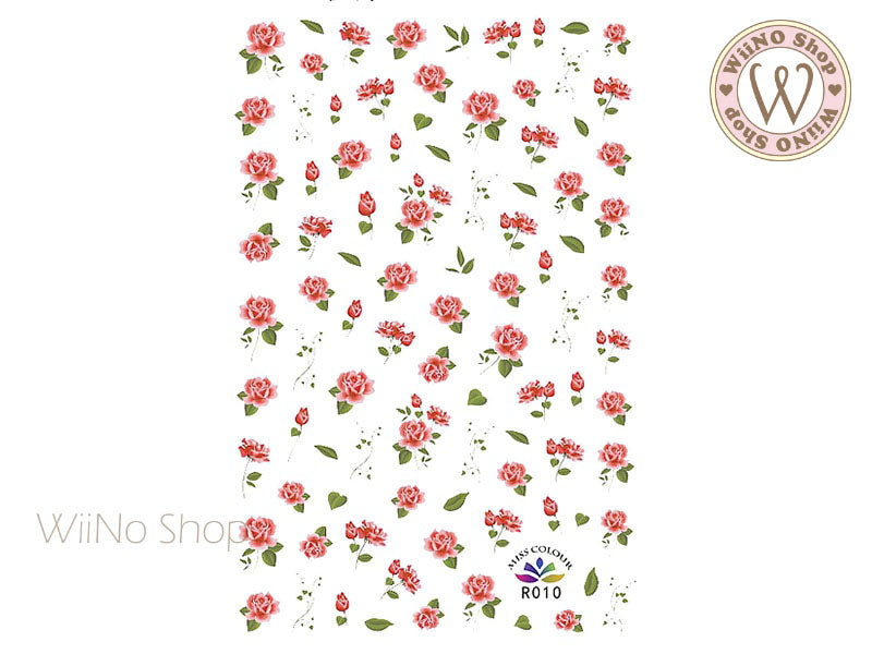Pink Roses Adhesive Nail Art Sticker - 1 pc (R010)