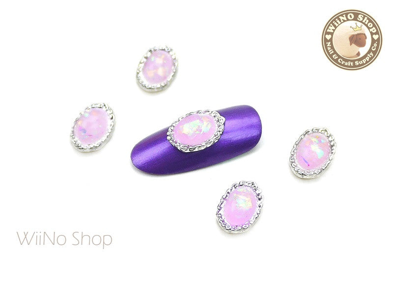 Pink Sparkle Rhinestones Silver Lace Frame Nail Metal Charm - 2 pcs