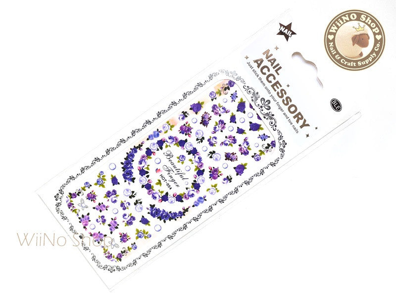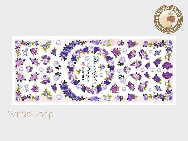 Purple Rose Bouquet Water Slide Nail Art Decals - 1pc (HOT-054)
