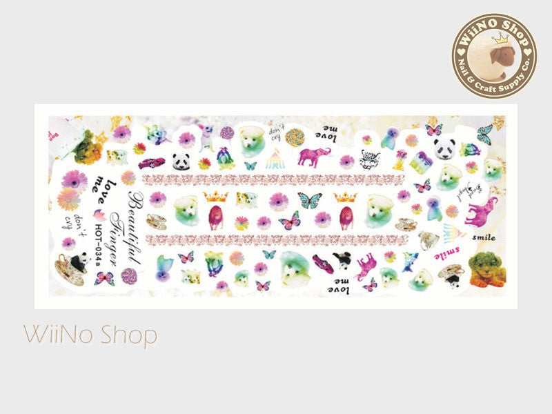Rainbow Puppy Dog Animal Fantasy Water Slide Nail Art Decals - 1pc (HOT-034)