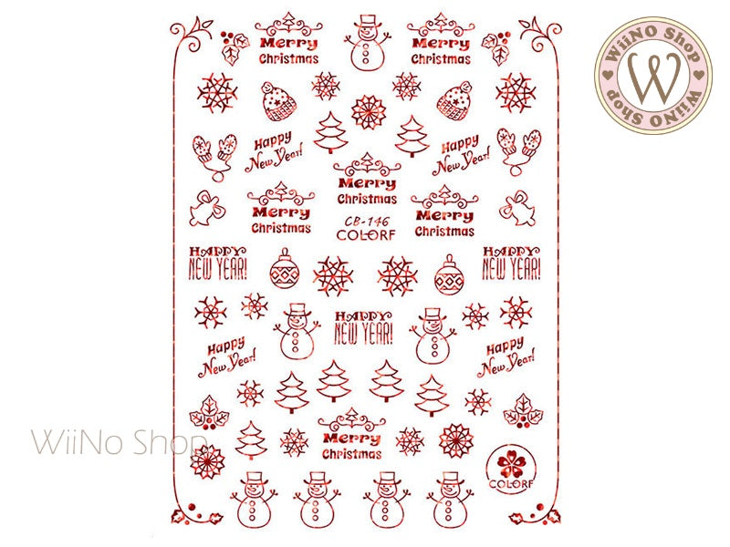 Red Holographic Christmas Adhesive Nail Art Sticker - 1 pc (CB-146RH)