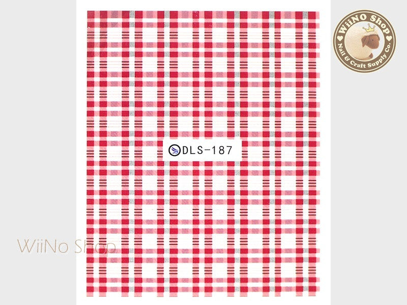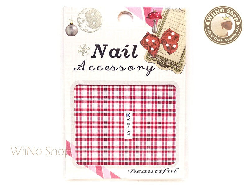 Red Plaid Pattern Water Slide Nail Art Decals - 1pc (DLS-187)