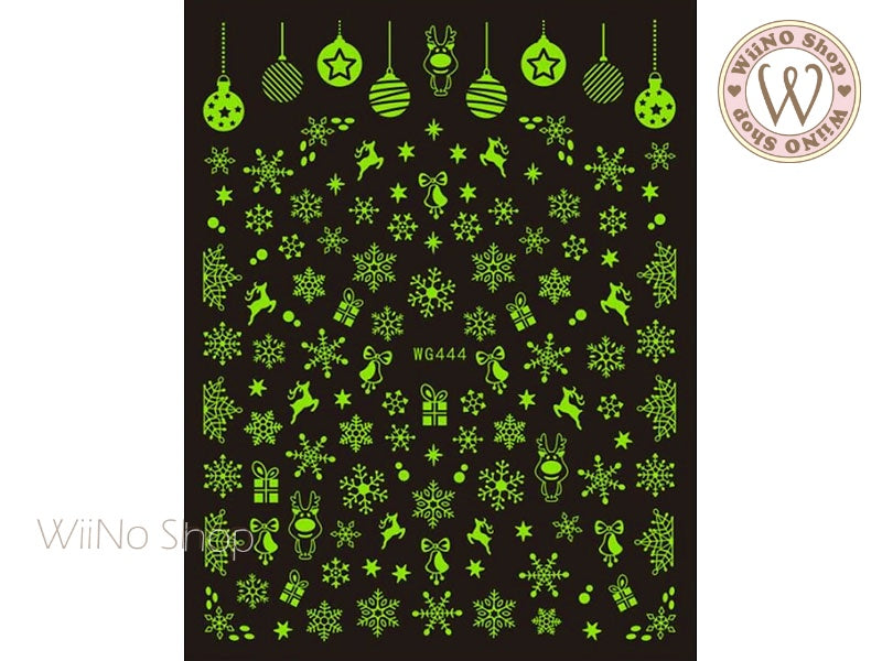 Reindeer Snowflake Glow in the Dark Adhesive Nail Art Sticker - 1 pc (WG444GD)