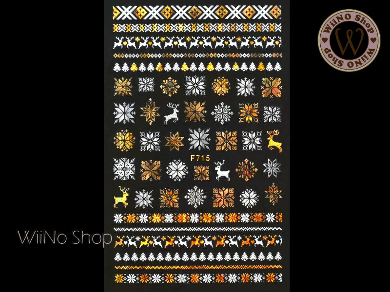 Reindeer Sweater Pattern Gold Holographic Adhesive Nail Art Sticker - 1 pc (F715-GH)