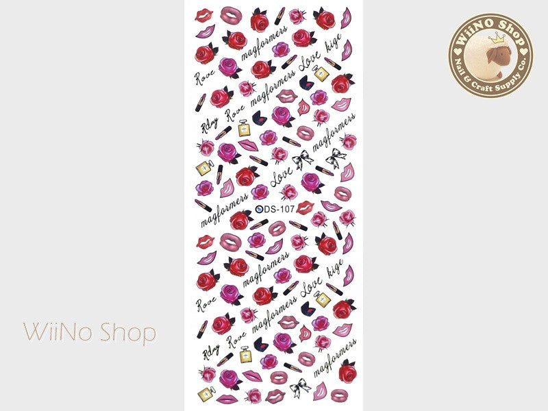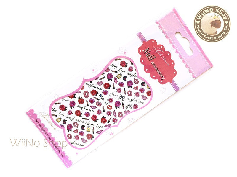 Rose Lips Perfume Water Slide Nail Art Decals - 1 pc (DS-107a)