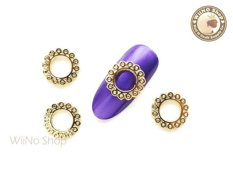 Round Lace Frame Gold Nail Metal Charm - 2 pcs