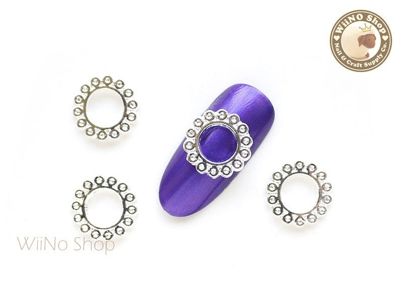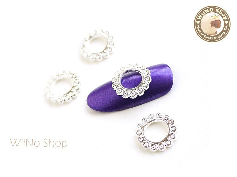 Round Lace Frame Silver Nail Metal Charm - 2 pcs