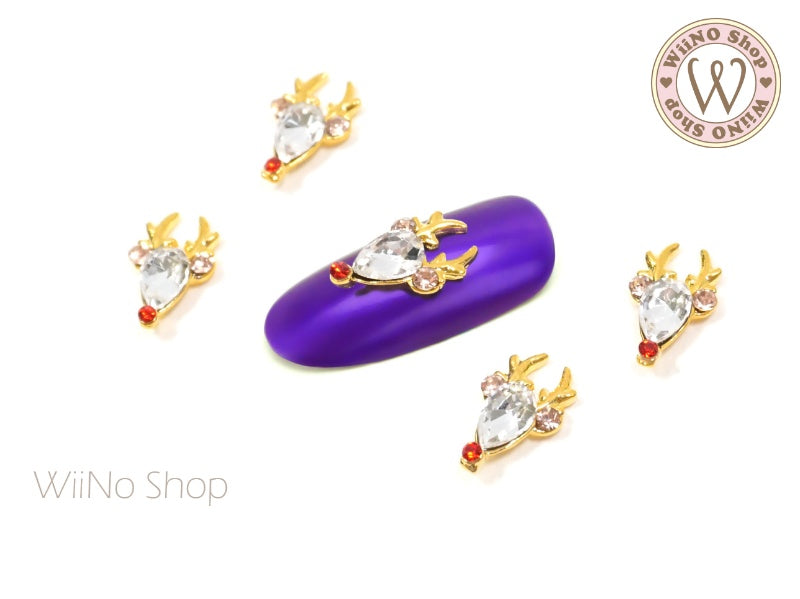 Rudolph Reindeer Crystal Nail Metal Charm - 2 pcs
