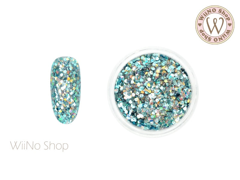 Sea Turquoise Hexagon Mix with Glitter Dust (A22)