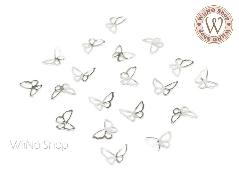 Silver 3D Hollow Butterfly Nail Metal Decoration - 5 pcs