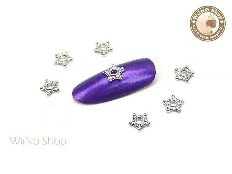 Silver Bead Star Nail Metal Charm - 4 pcs