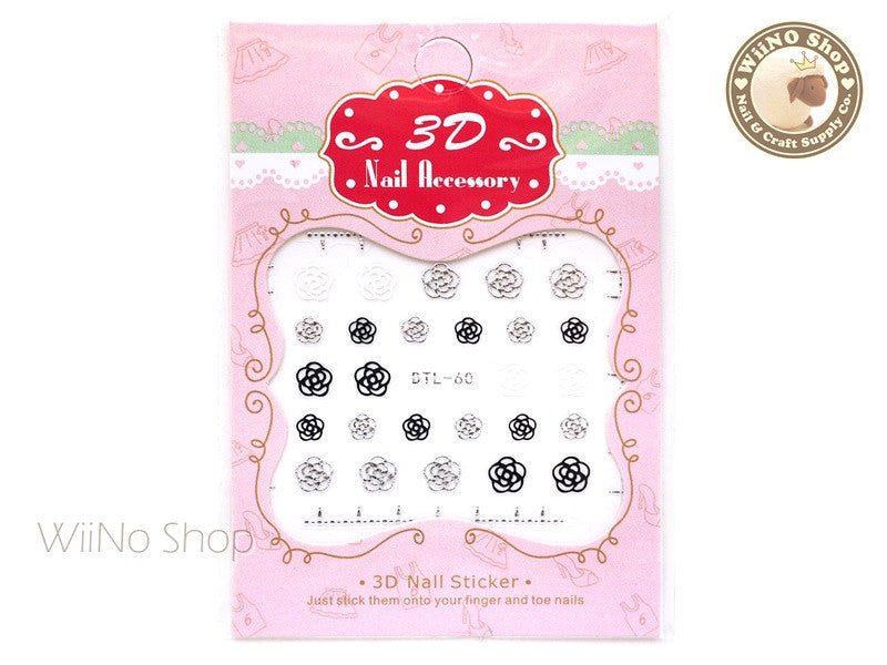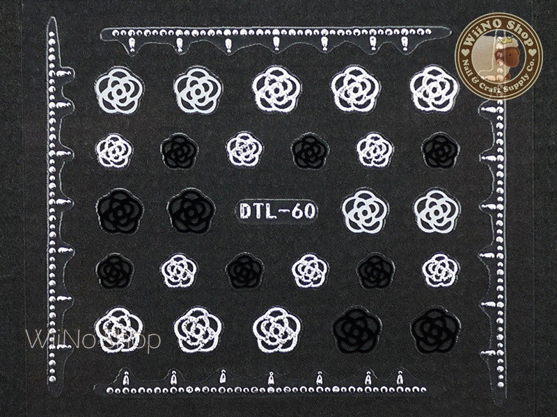Silver Black White Hollow Camellia Nail Art Sticker - 1 pc (DTL-60S)