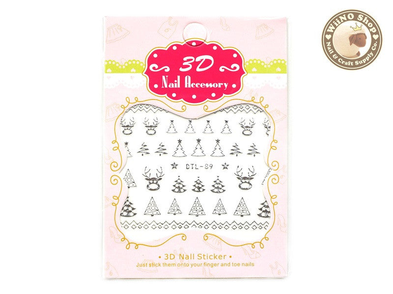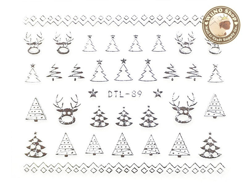 Silver Christmas Tree Reindeer Nail Art Sticker - 1 pc (DTL-89S)