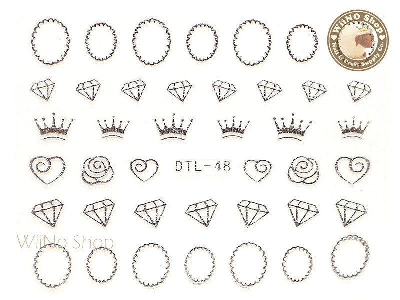 Silver Crown Diamond Frame Nail Art Sticker - 1 pc (DTL-48S)