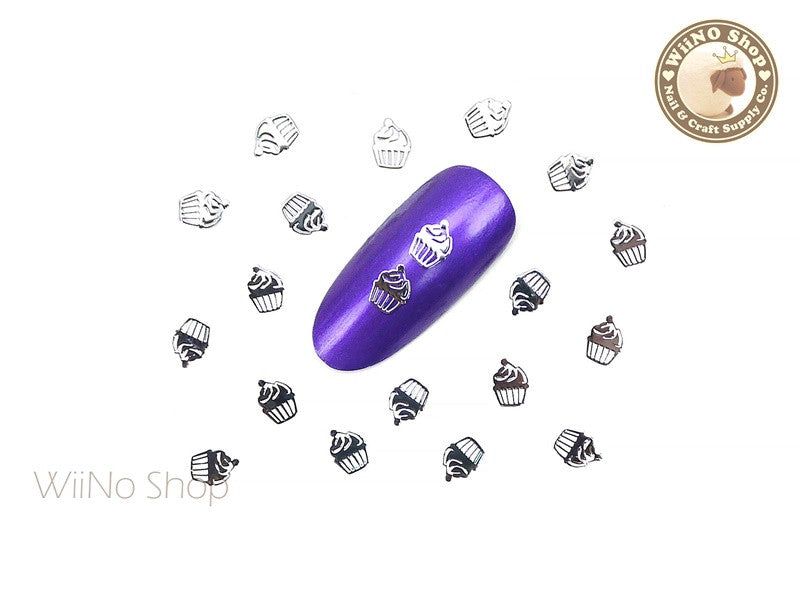 Silver Cupcake Ultra Thin Nail Art Metal Decoration - 25 pcs