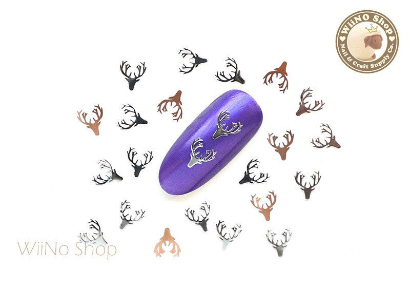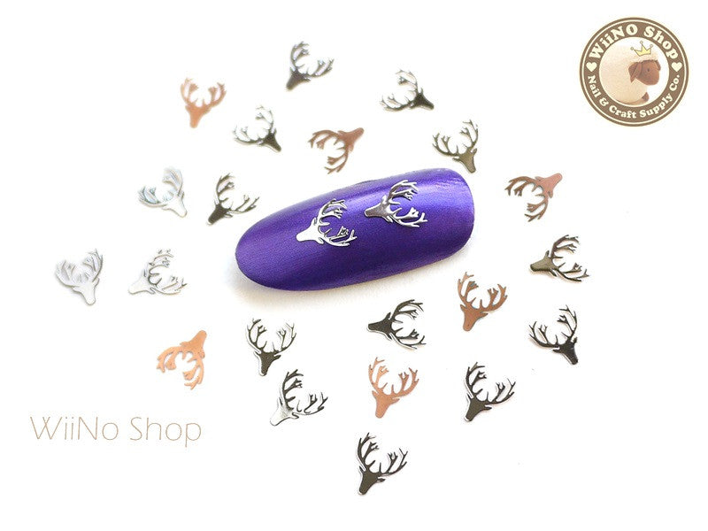 Silver Deer Head Ultra Thin Nail Art Metal Decoration - 25 pcs