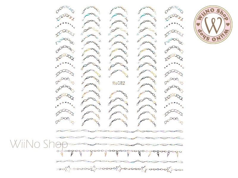 Silver Holographic Curved Chain Adhesive Nail Art Sticker - 1 pc (Me082SH)