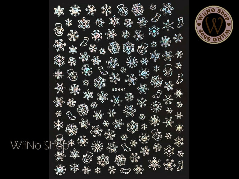 Snowman Snowflake Silver Holographic Adhesive Nail Art Sticker - 1 pc (WG441SH)