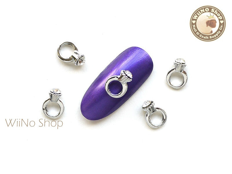Silver Mini Diamond Ring Nail Charm - 2 pcs