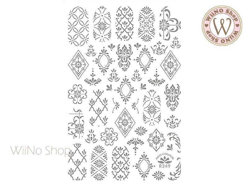 Silver Moroccan Pattern Adhesive Nail Art Sticker - 1 pc (R349-S)