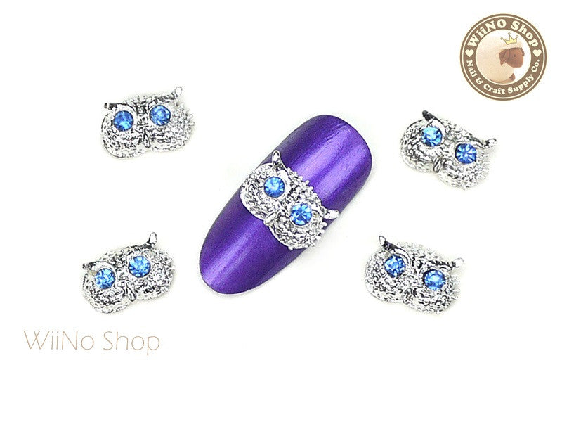 Silver Owl Head Nail Metal Charm Nail Art - 2 pcs