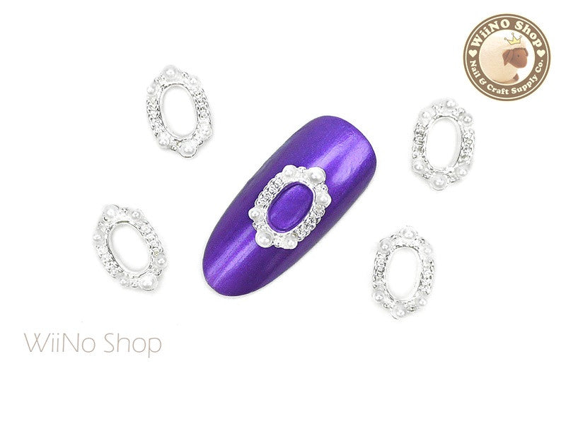 Silver Pearl Frame Nail Metal Charm - 2 pcs