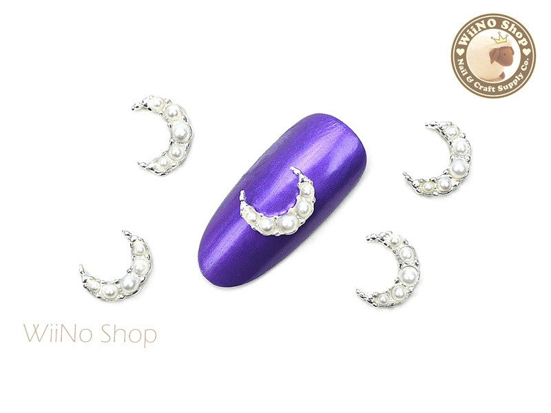 Silver Pearl Moon Nail Art Metal Charm - 2 pcs