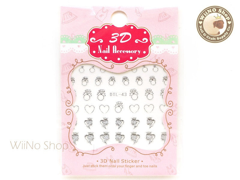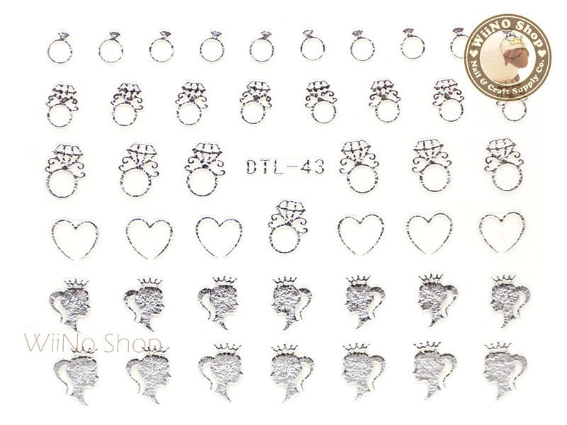 Silver Princess Diamond Ring Nail Art Sticker - 1 pc (DTL-43S)